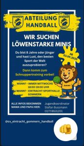 Mit Blick auf die zur Verfügung stehenden Trainingszeiten und Trainer konnten wir in den letzten Jahren leider kein separates Training für die Mini’s anbieten. Deshalb freuen wir uns riesig, dies ab 03.09.2025 unter der Leitung von Lucas Johnke wieder machen zu können. Uns ist dabei auch bewusst, dass die Trainingszeit mit Blick auf das Alter …