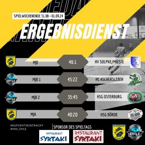 Hallo liebe Eintracht-Fans Die ersten Punktspiele der neuen Saison sind gespielt und unsere Mannschaften haben schon fleißig Punkte gesammelt. Eine positive Bilanz von 3 Siegen, einem Unentschieden und zwei Niederlagen ist das Ergebnis. Dabei konnte unsere „Erste“ mit dem Punktgewinn bei der @tsg_calbe_handball ein echtes Ausrufezeichen setzen. Ein besonderes Lob gebührt aber auch unseren Kleinsten. …