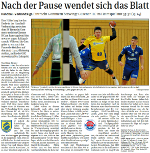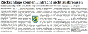 Unsere erste Männermannschaft hat am zurückliegenden Wochenende zwar die Tabellenführung der Verbandsliga Nord an den BSV 93 Magdeburg verloren, dennoch konnten sich unsere Männer mit einem 35:32 (13:14) Derbysieg gegen den Güsener HC belohnen. Hier für euch noch der Bericht der Volksstimme: Auf geht´s Eintracht!!!