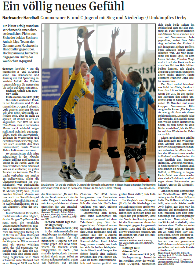 Wir haben euch den Spielbericht der Volksstimme nochmals beigefügt und wünschen euch schon heute frohe und erholsame Ostertage.